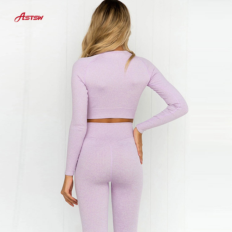 طقم ملابس يوجا بأكمام طويلة بدون خياطة
