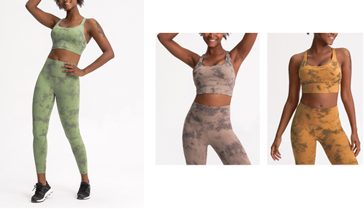 تتكون المواد المكونة للملابس الرياضية من 80٪ نايلون و 20٪ بوليستر. هذا النوع من التآكل النشط فريد من نوعه لأن نمطه الخاص مصنوع بواسطة صبغة التعادل ، مثل الحبر الذي يقطر على ورق الرسم. إلى جانب تصميمها الفريد والفاخر ، فإن حمالة الصدر الرياضية واللباس الداخلي المصبوغ بالرباط أكثر راحة للارتداء نظرًا لخصائصها الناعمة والمرنة.