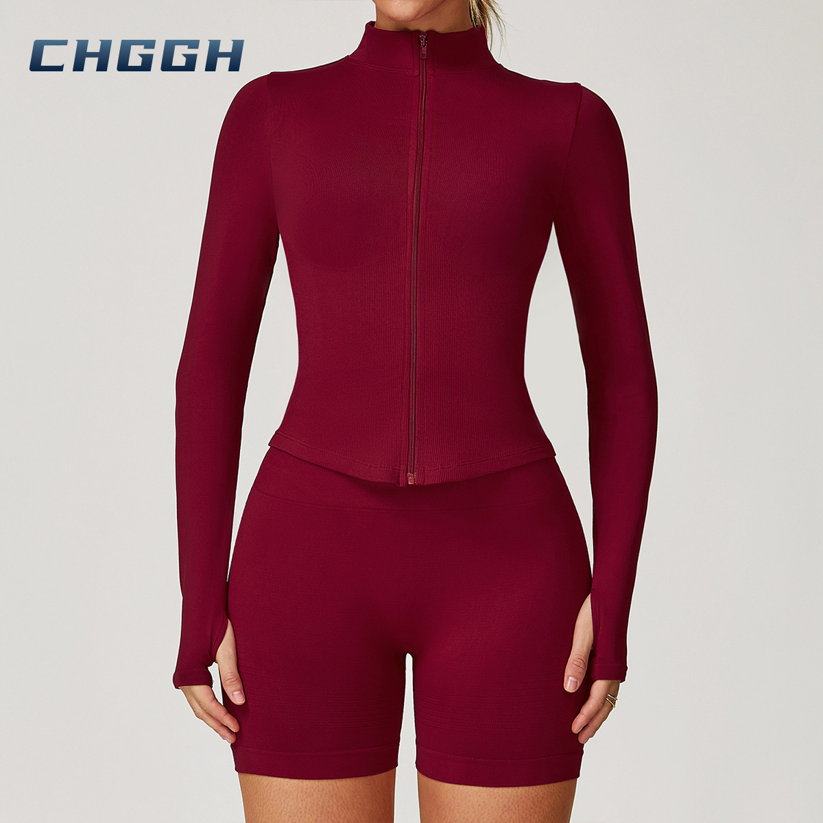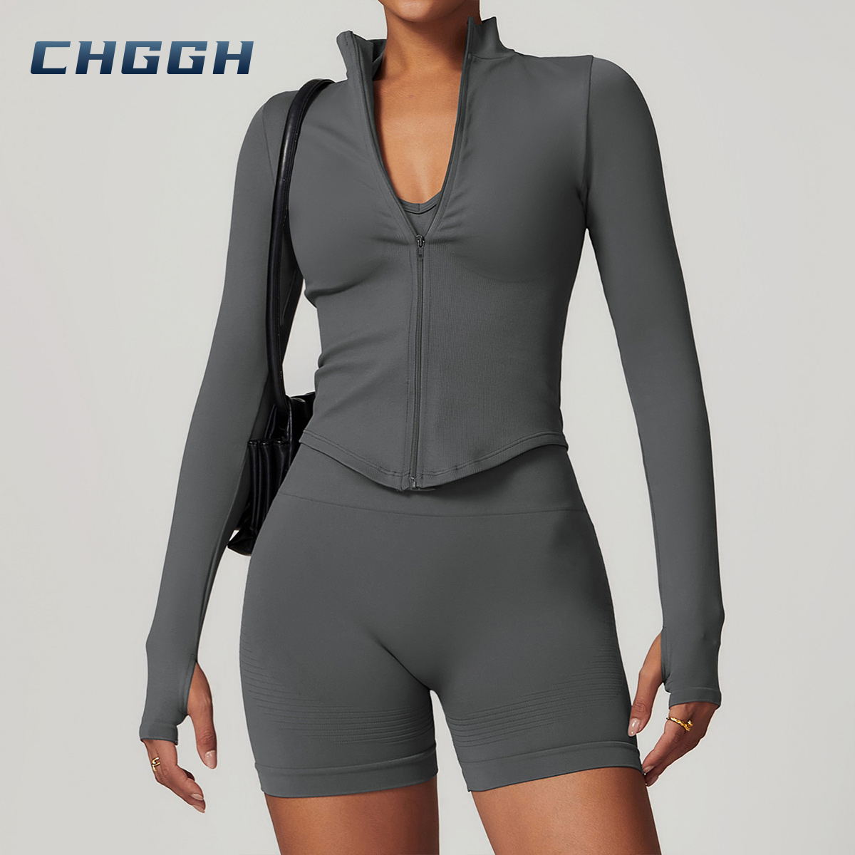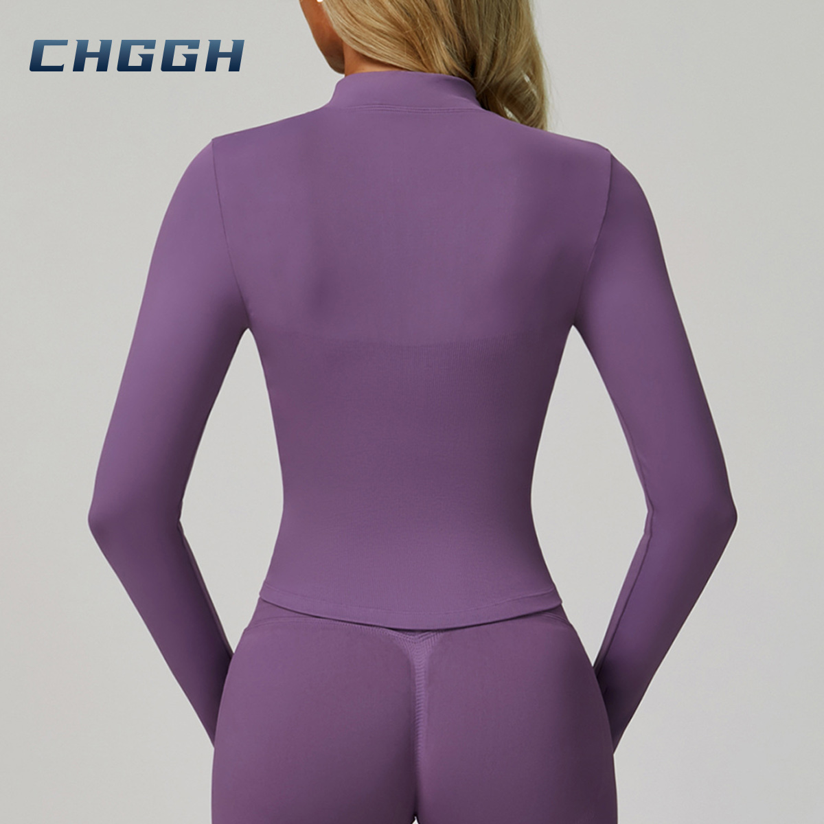جديد نصف سستة طويلة الأكمام أعلى سلس وطماق ، سحاب أعلى يبرز امتلاء الصدر.