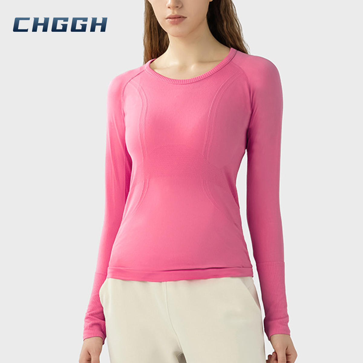 يمتاز القميص العلوي بدون خياطة لدعم التمرين بنسيج ناعم ومبتكر وناعم وأكمام طويلة مما يوفر ملاءمة داعمة ومخصر عالي وأداءً ممتعًا لكل جلسة تدريب.